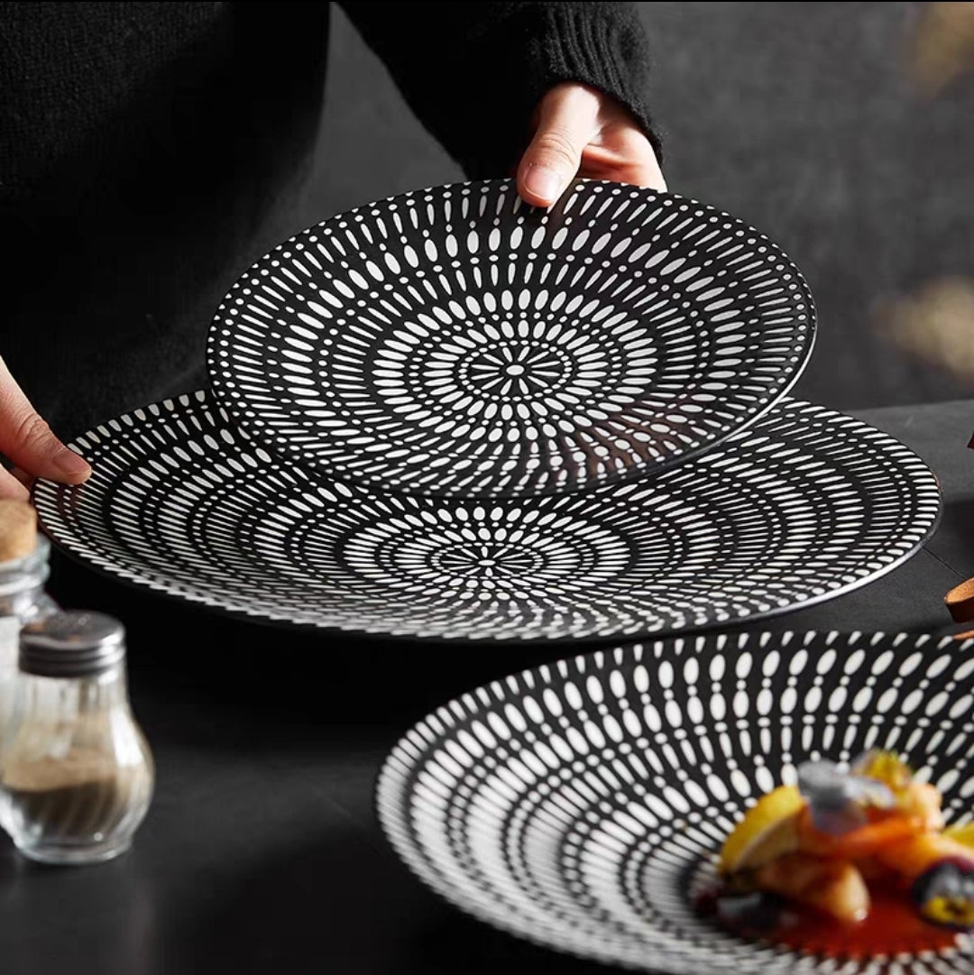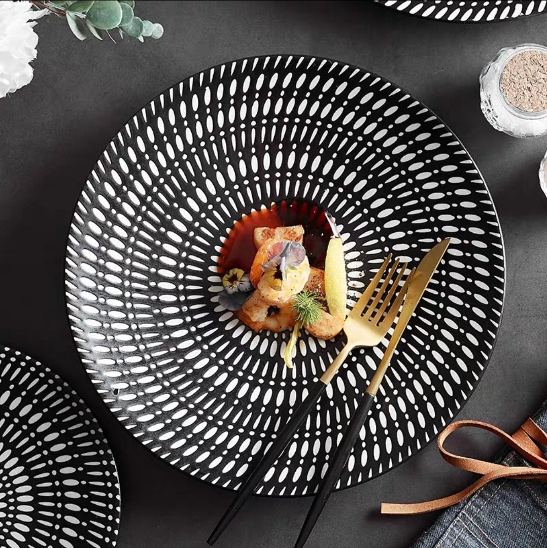 Bring artistic elegance to your table with this lightweight black embossed dinner plate, crafted from premium New Bone China. Inspired by Nordic minimalism, it features a textured ripple pattern that adds visual depth to every meal. Whether you're plating up for guests or creating styled food photography, this plate turns dining into an aesthetic experience.