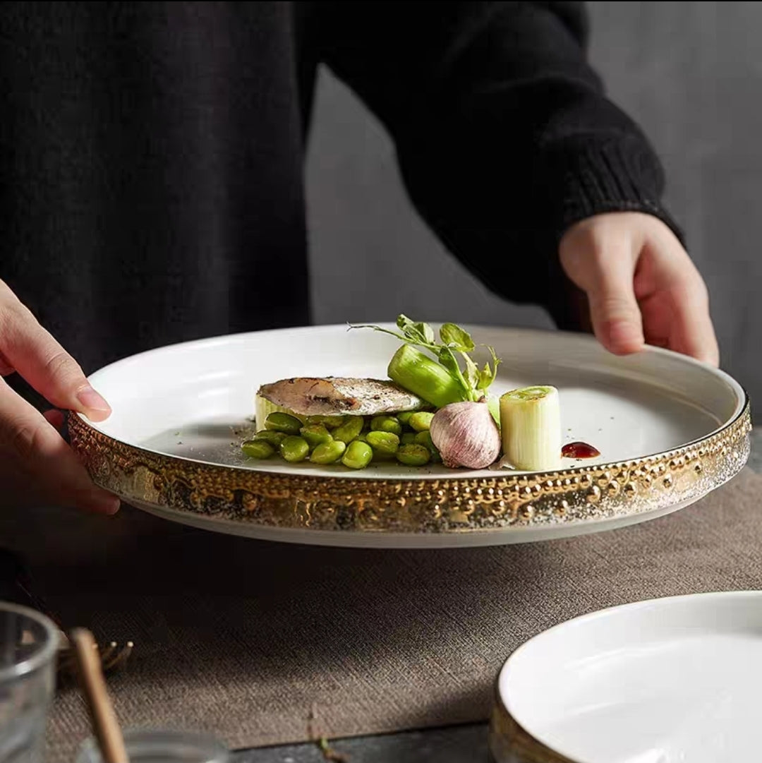 Bring refined minimalism to the table with this Nordic Pearl-Rimmed Ceramic Plate, designed for visual impact and everyday practicality.