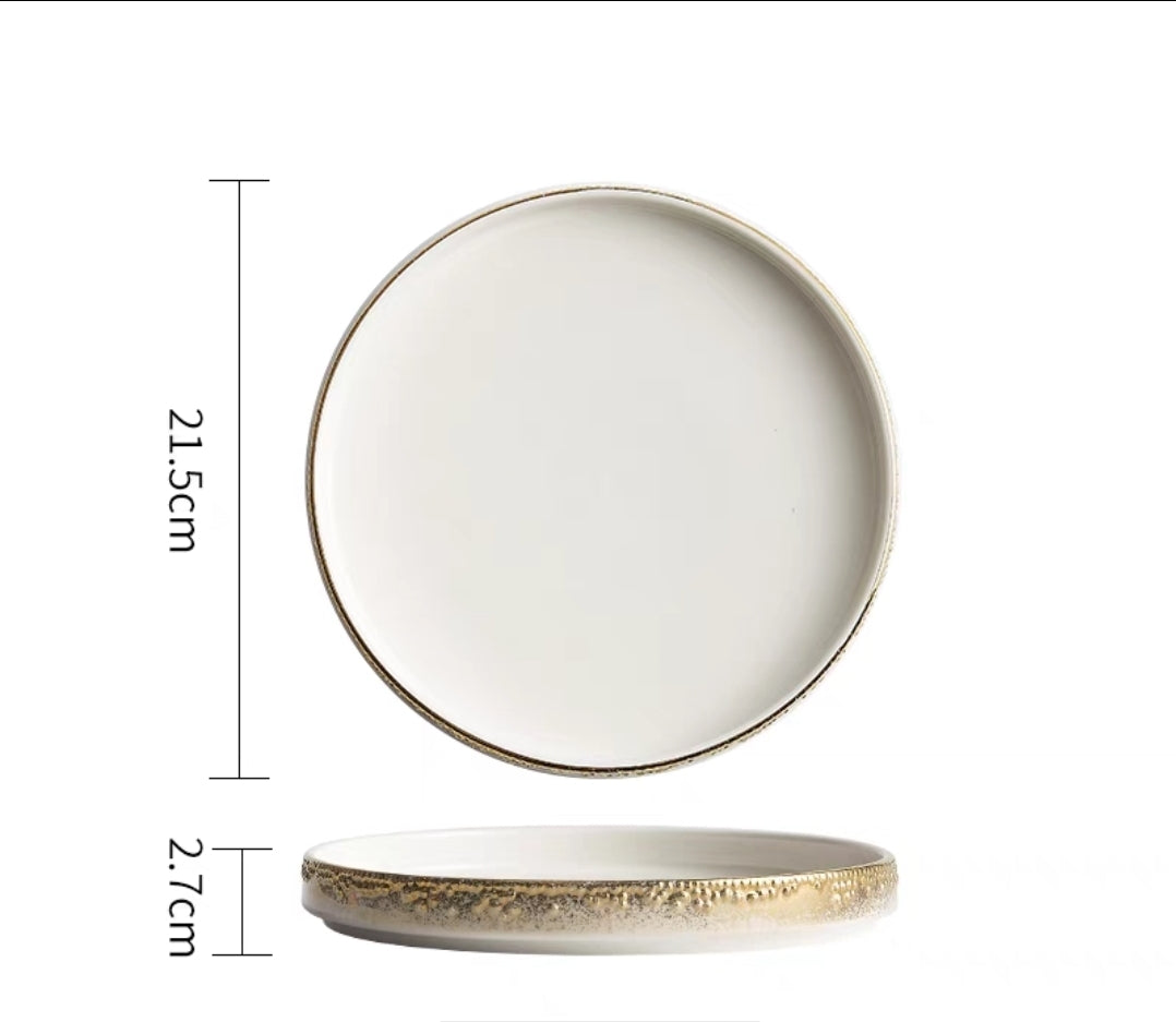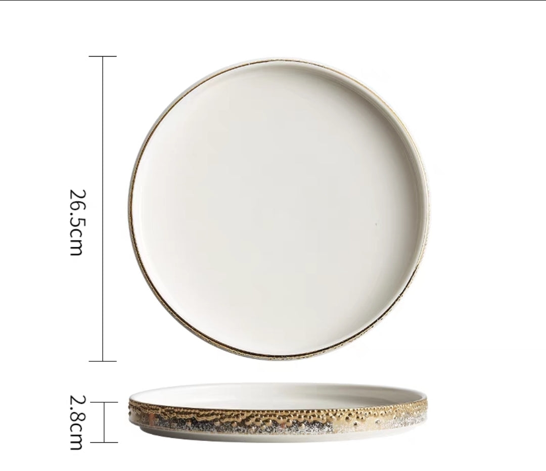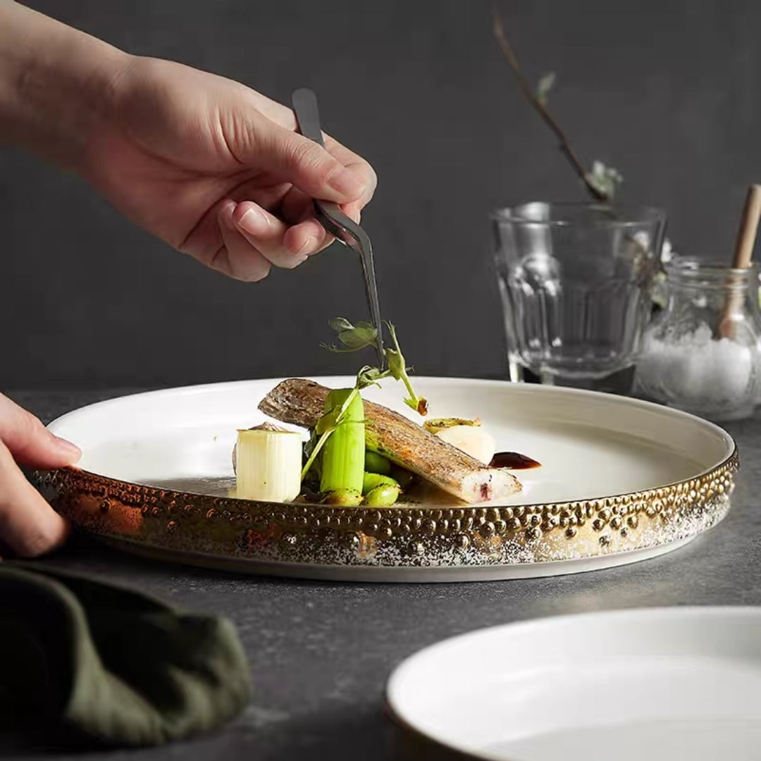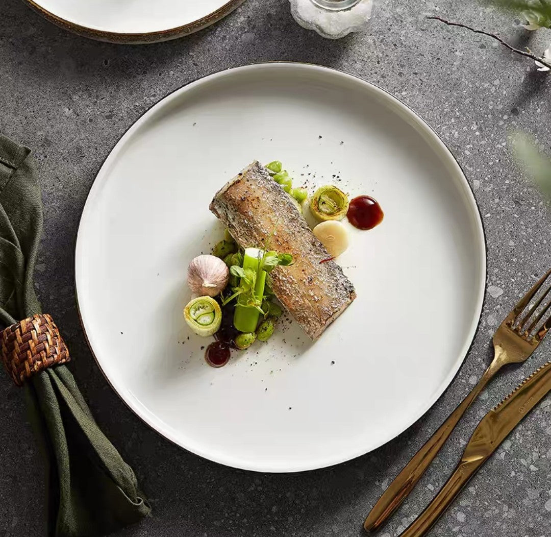 Nordic Pearl-Rimmed Ceramic Plate – Elegant Flat Dinnerware for Restaurants, Homes & Food Styling - Set of 4