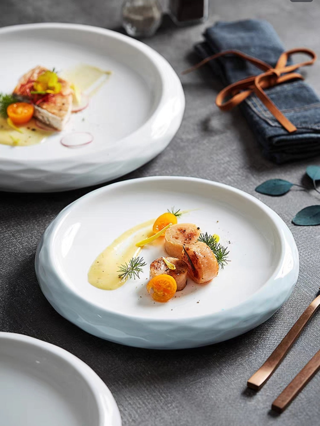 Elevate your dining experience with this handmade ripple-edge ceramic plate, designed for refined food presentation and everyday elegance. The unique wave-like texture adds visual interest while maintaining a minimalist aesthetic.